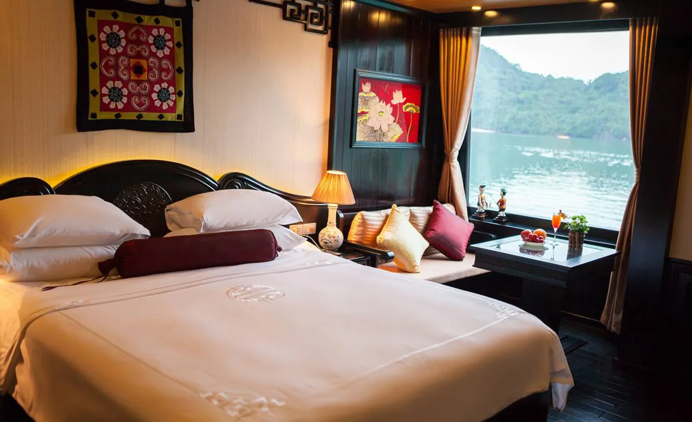 15:00 – 17:00: Cruise to Vung Dang – Cong Dam area: Swim or relax on a white sandy beach; Go kayaking through the mystery Karst Mountains in Vung Dang area.
