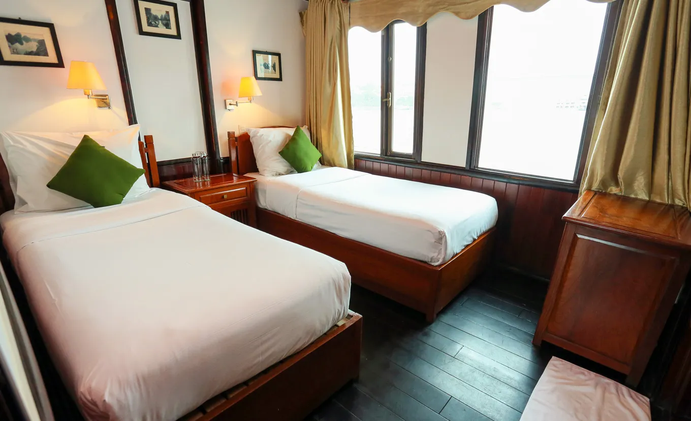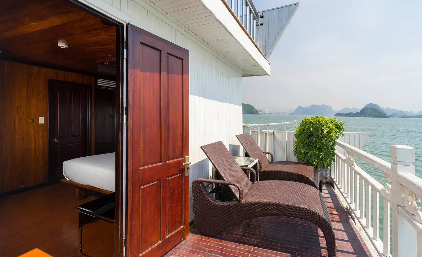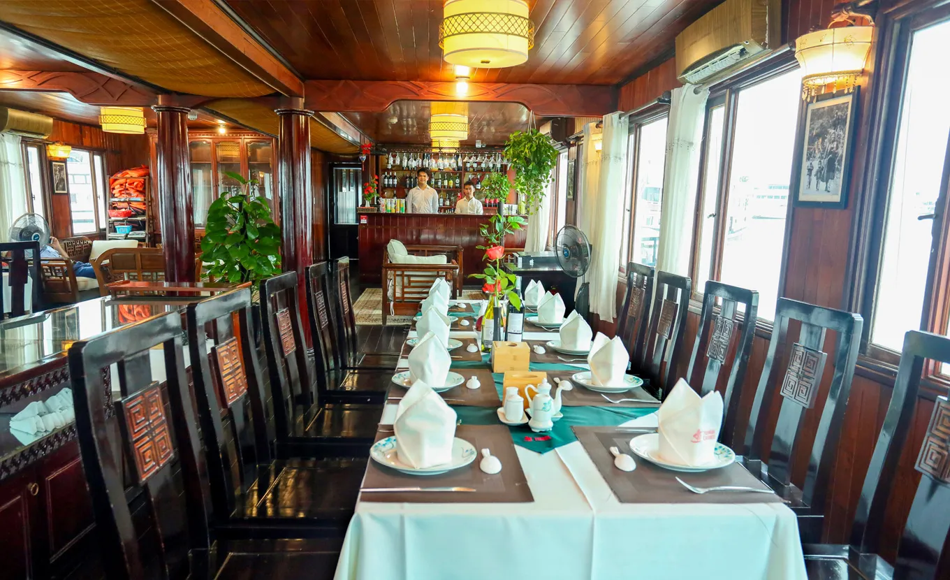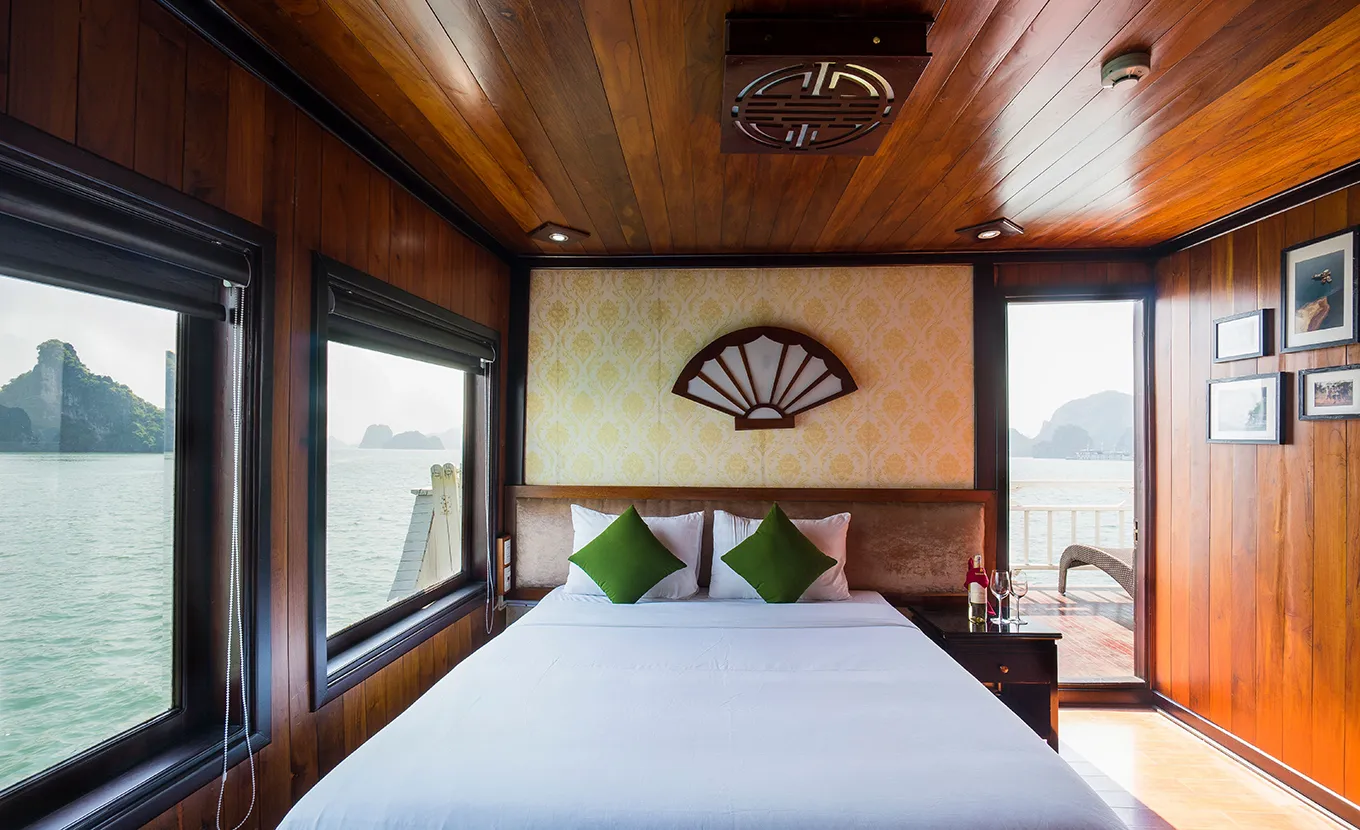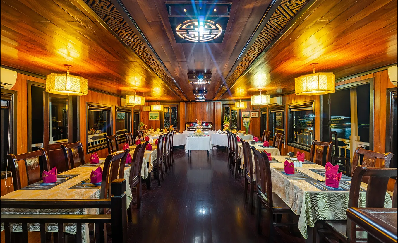 This ship seamlessly blends comfort and style, utilizing local timber, marble, and copper to preserve a charming traditional design. It features only 10 and 18 fully equipped cabins along with a spacious restaurant and a vast sundeck. Cruising through Bai Tu Long Bay, a less crowded gem compared to its neighbor Halong Bay, the Garden Bay Legend Cruise promises a unique and authentic experience for a small group of travelers.
