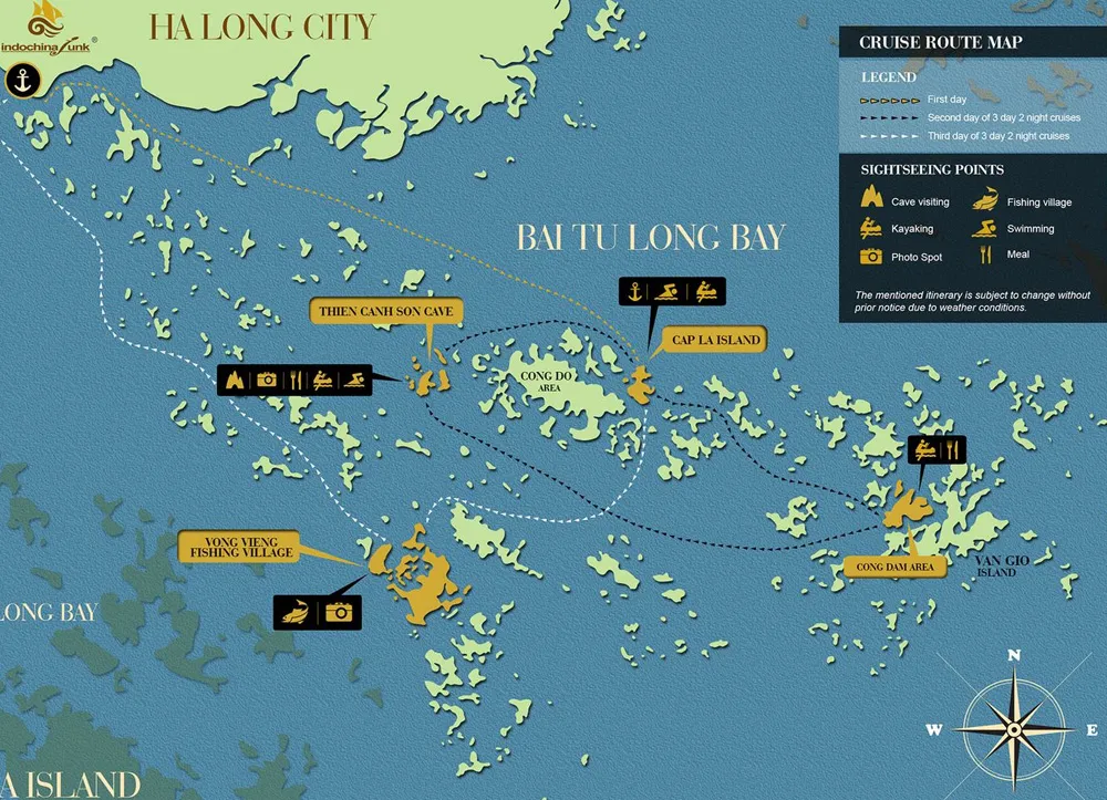 08:00 – 10:00: Cruise to Cong Dam while discovering geological values of Bai Tu Long Bay.