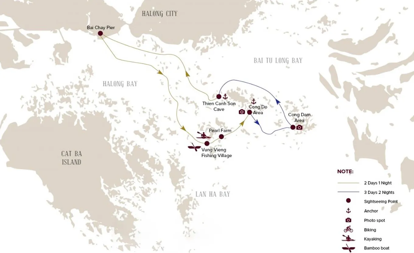 12:15 – 12:30: Get settled on board with a welcome drink from the La Regina Classic crew while the cruise manager gives you the lowdown on safety. The boat will then set sail for Bai Tu Long Bay, much less crowded than its neighbor - Halong Bay.