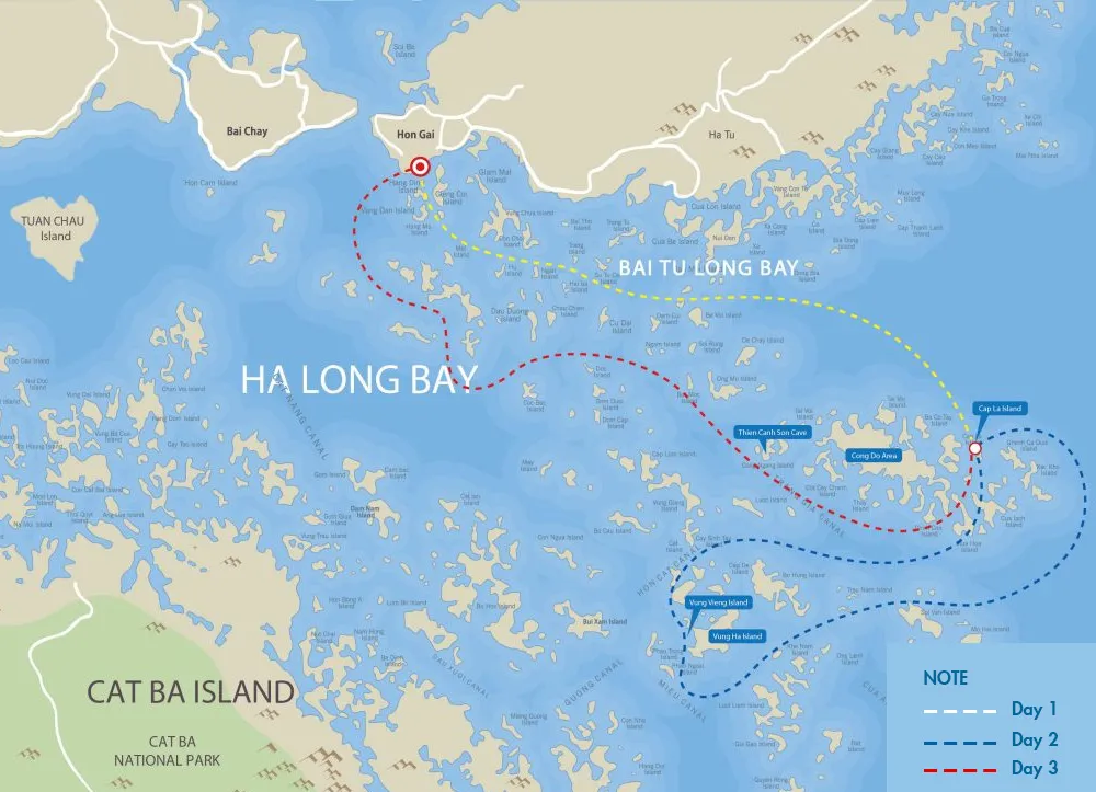 14:00: Spend more time for kayaking and swimming at Cong Dam, or relaxing on boat. If the weather allows, we can take a glance at Thay Cave before back to the anchor point.
