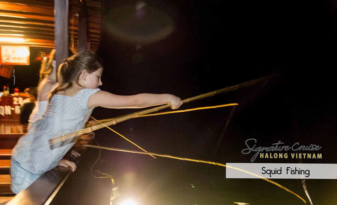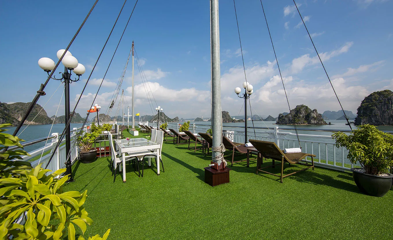 20:45 – 24:00: Your free time to relax with an exotic cocktail or whatever takes your fancy. Our bar has a wide range or wines, beers and liquors and is always a welcome sight for guests after a day on Halong Bay. Order a specialized massage in room. Choosing with other activities boat cruise such as watch documentary movies, squid fishing or simply relax on our roof top deck under the cover of a star filled sky.
