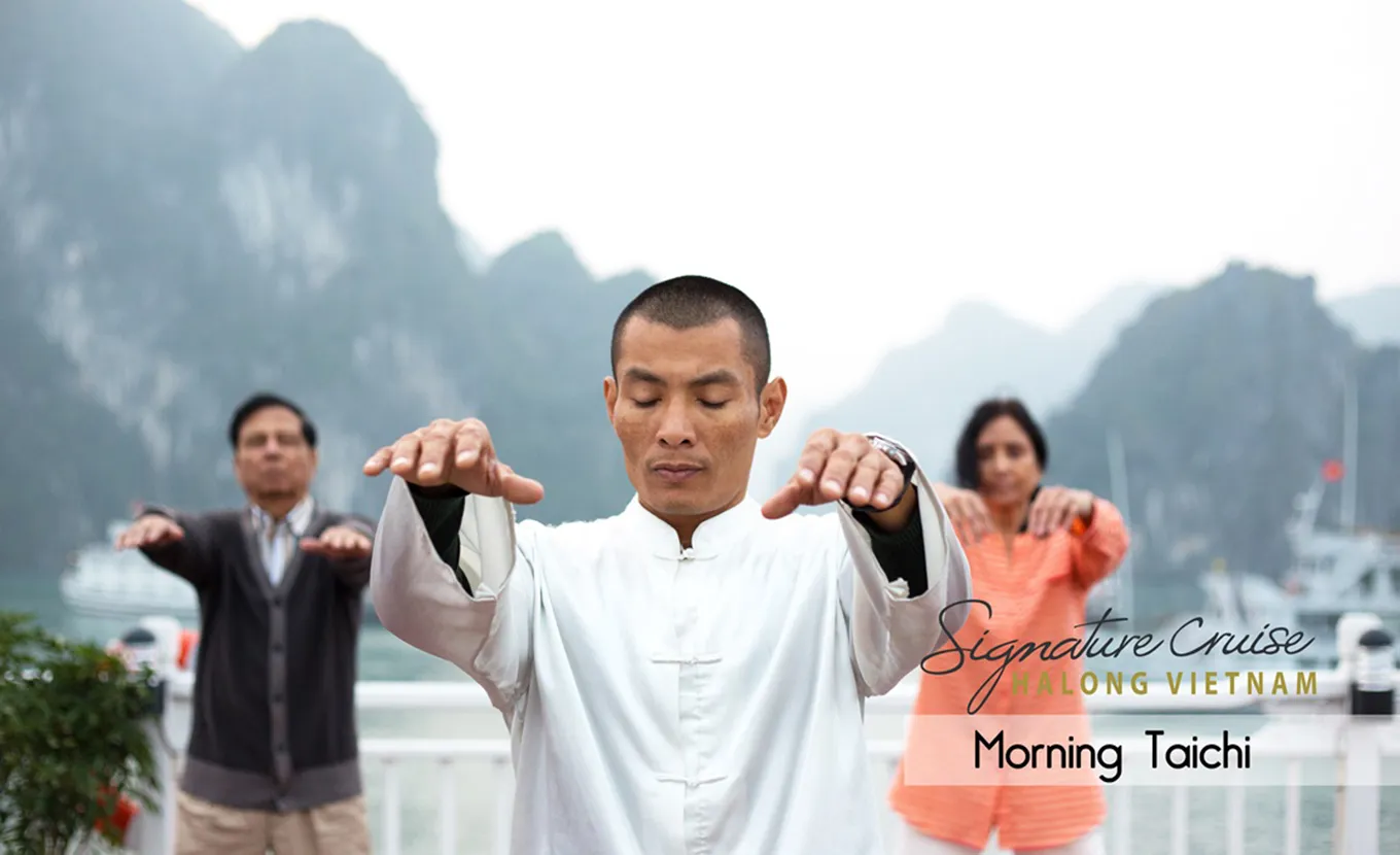 06:30: The nicest time of the day on Halong Bay is the morning. Head to the upper deck to participate in our daily Tai Chi sessions. Relax with an early morning cup of tea, coffee or juice anywhere you wish on the boat and watch the never ending miraculous scenery unfold before you.