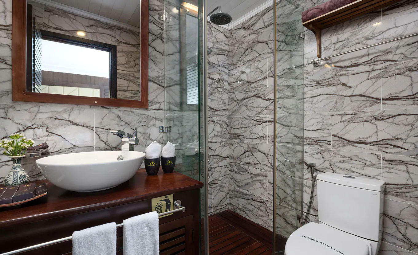 Transfer by tender to Sung Sot Cave. Walk up about 100 steps to the cave entrance. It takes approximately 45 minutes to visit Sung Sot Cave, one of the biggest caves in Halong bay with beautiful stalactites and stalagmites. Return to the cruise by tenderCheck out and settle your bill at reception.