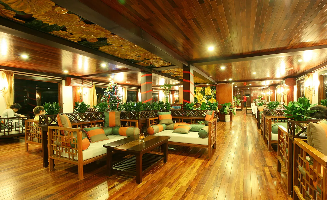 13:15 – 14:00: Passengers enjoy the deluxe Vietnamese Set Menu Lunch. Massage service is available after lunch and throughout the cruise. Please book in advance with your Cruise Manager. Drink vouchers are given out from 15.00 to 18.00.