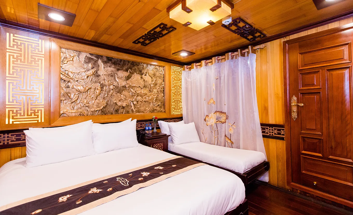 Inspired from traditional junk manufacturing, Victory Cruise is the symbol of Halong Bay’s legendary beauty. Tropical precious wood, fine arts decorations and a devoted staff will lead you to an amazing journey discovering Ha Long Bay.