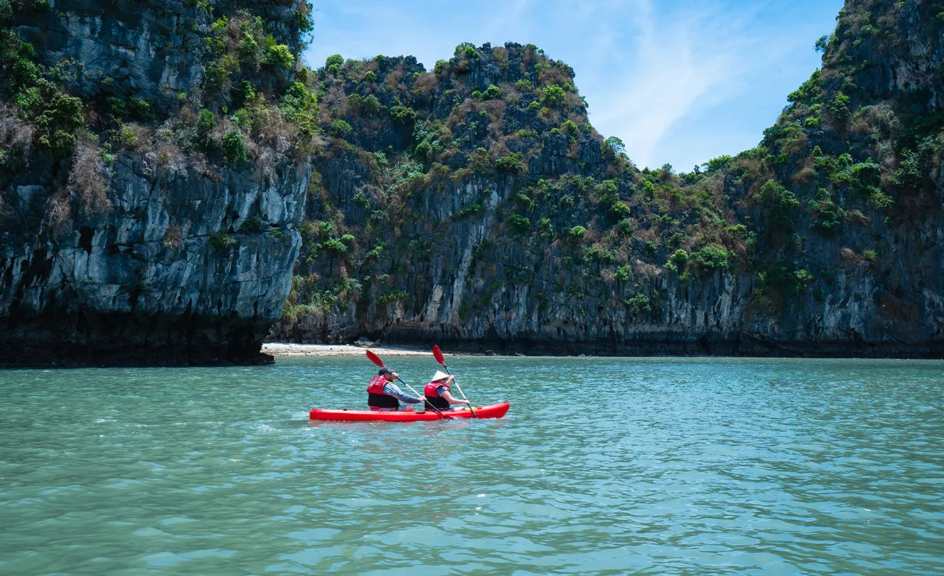 14:45: Luon Cave excursion on a bamboo rowing boat by locals or kayaking. This is one of the must-do activities in the bay.