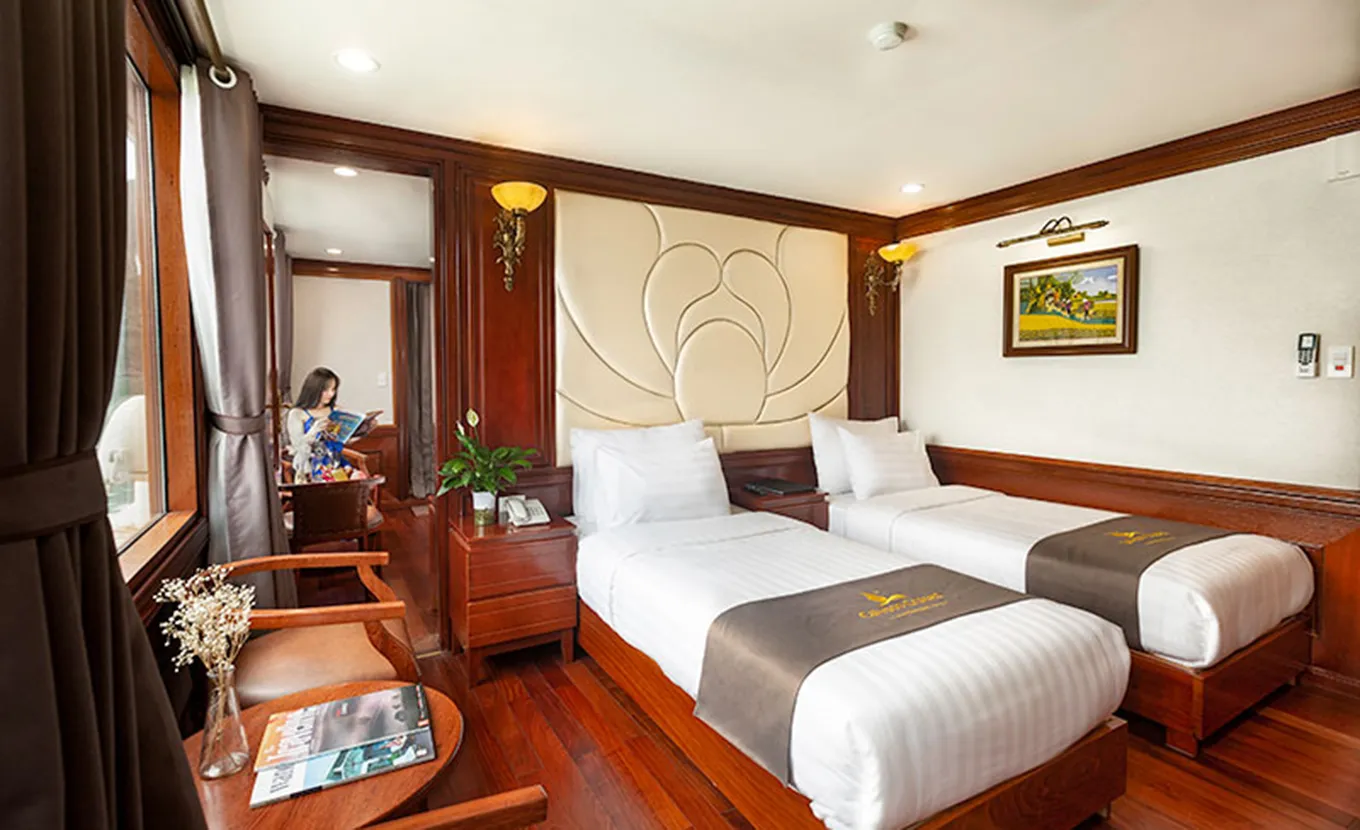 Followed by our cruise briefing where you will also be given safety instructions before checking into your cabins. While the cruise sailing, you enjoy a bon-appetite lunch and being impressed by the beauty of hundreds of karst islands on your way passing Halong Bay to Lan Ha Bay.
