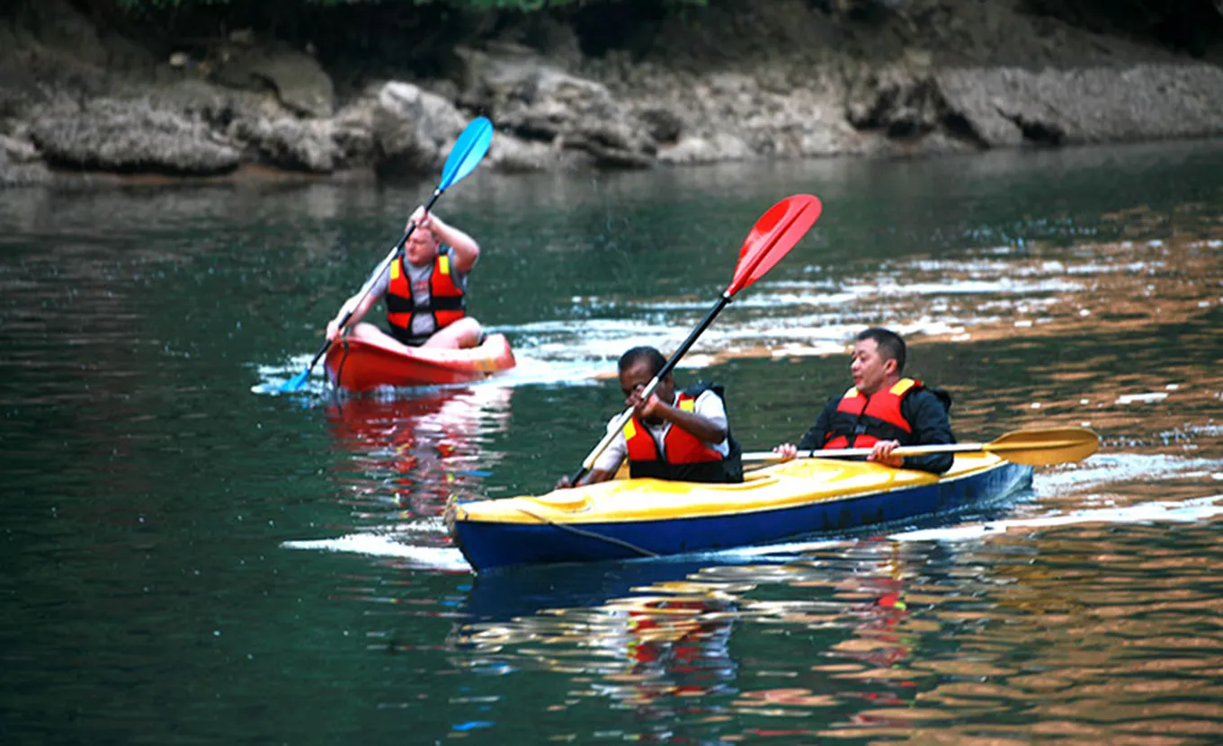 15:00: Visit light and Dark Water Cave, where you can do kayaking or bamboo boat rowed by local people.