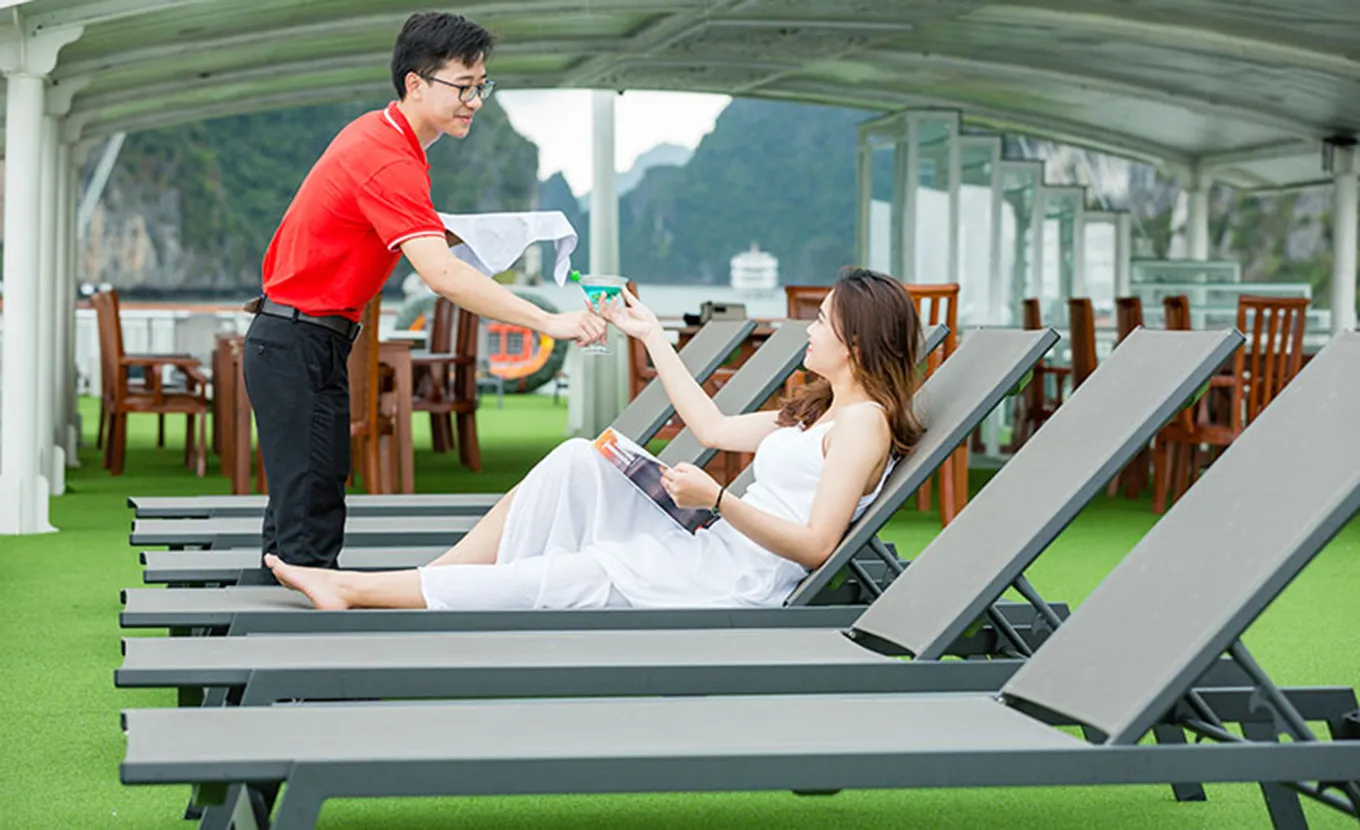 17:30: Return to Calypso Cruise. It’s time to admire the magnificent sunset over the Gulf of Tonkin and enjoy happy hour (buy 2, get 1 free).