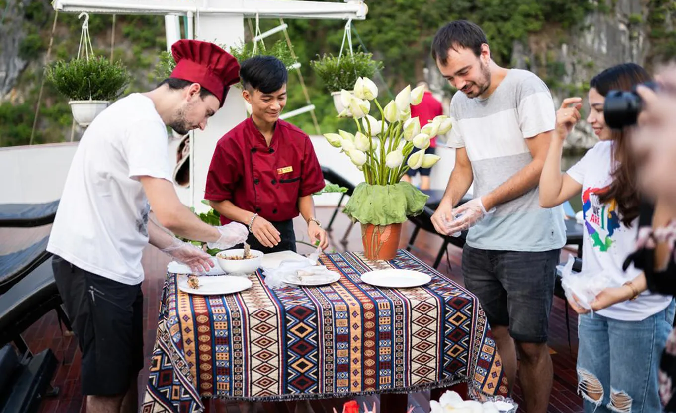 11:30: Disembarkation at Ben Beo Wharf and transfer back to Hanoi. Ends services.