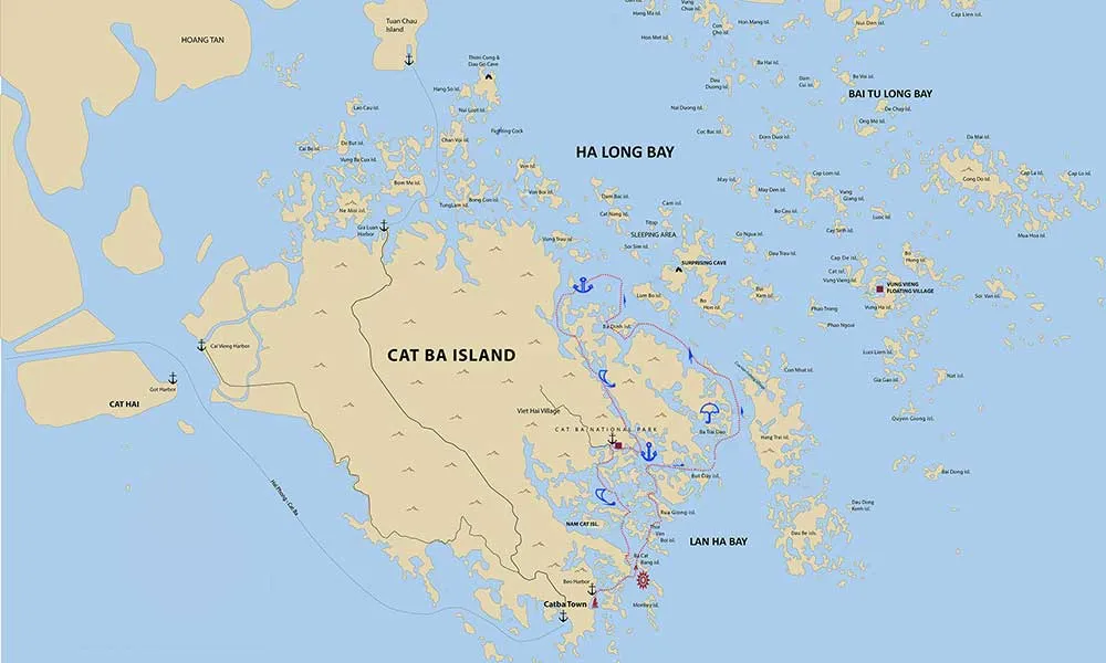 Cat Ba Ocean Cruise will lead you to the places in Lan Ha Bay which still remains in pristine, untouched surroundings offering the same beauty and spectacular scenery without the crowds.