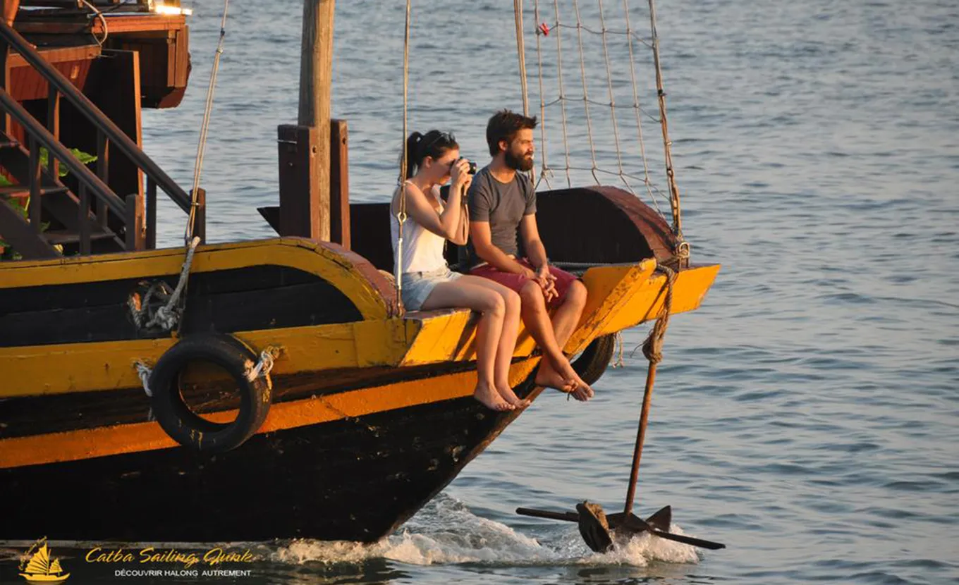 12:15: The cruise starts at the port of Ben Beo of Cat Ba Island where you embark on board. After a welcome drink, the junk crosses the floating fishingvillage and then sneaks into Lan Ha Bay.