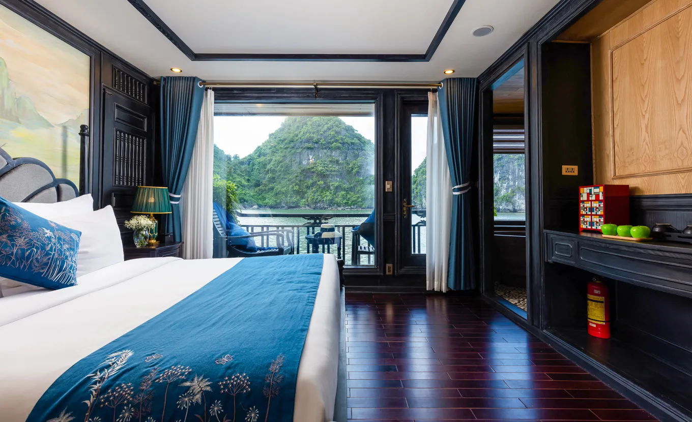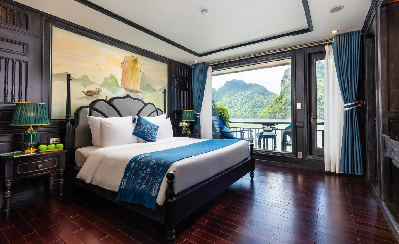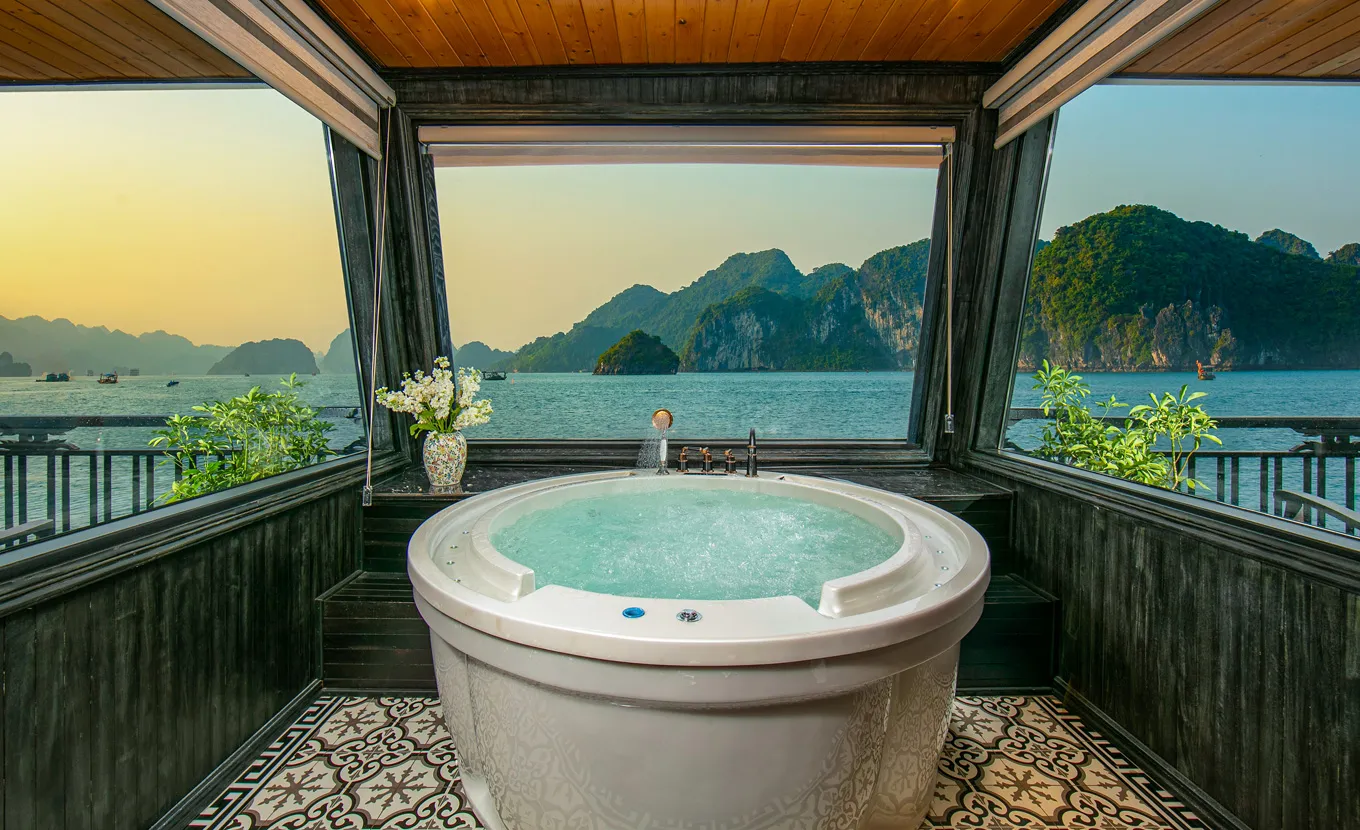 La Regina Grand embraces a design reminiscent of colonial Indochina from the 1930s, boasting timeless and sophisticated aesthetics. Featuring 27 spacious suite cabins, each adorned with floor-to-ceiling windows and private balconies, the La Regina Grand Cruise offers guests stunning panoramic views of Lan Ha Bay. Every cabin is a haven of tranquility, seamlessly blending classic elegance with modern comforts and luxuries. The experience is elevated by impeccable and personalized service, ensuring a serene and luxurious retreat.