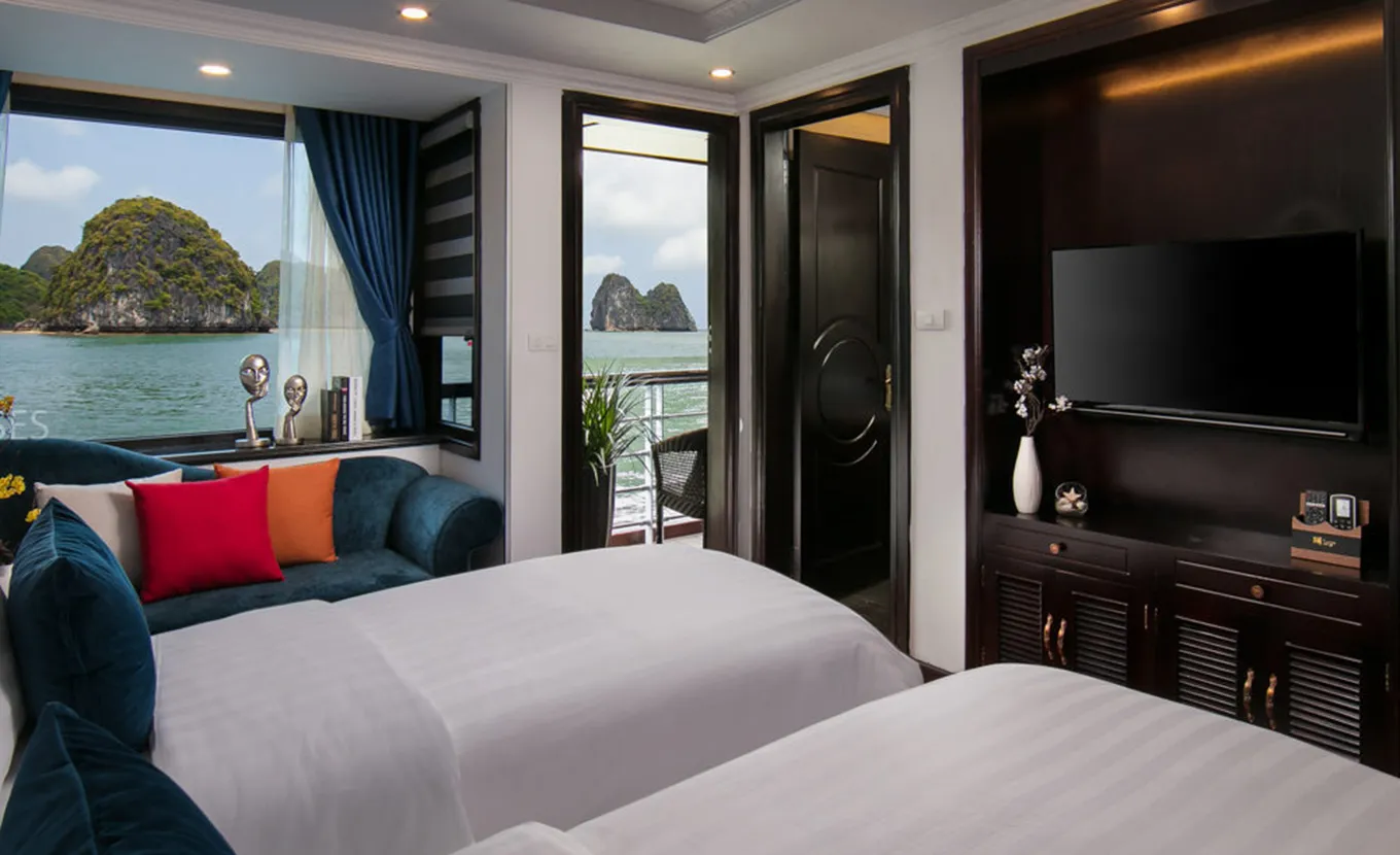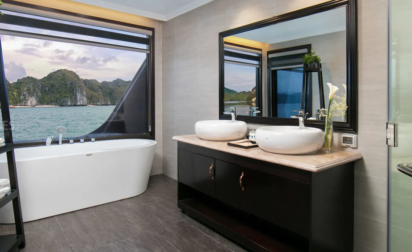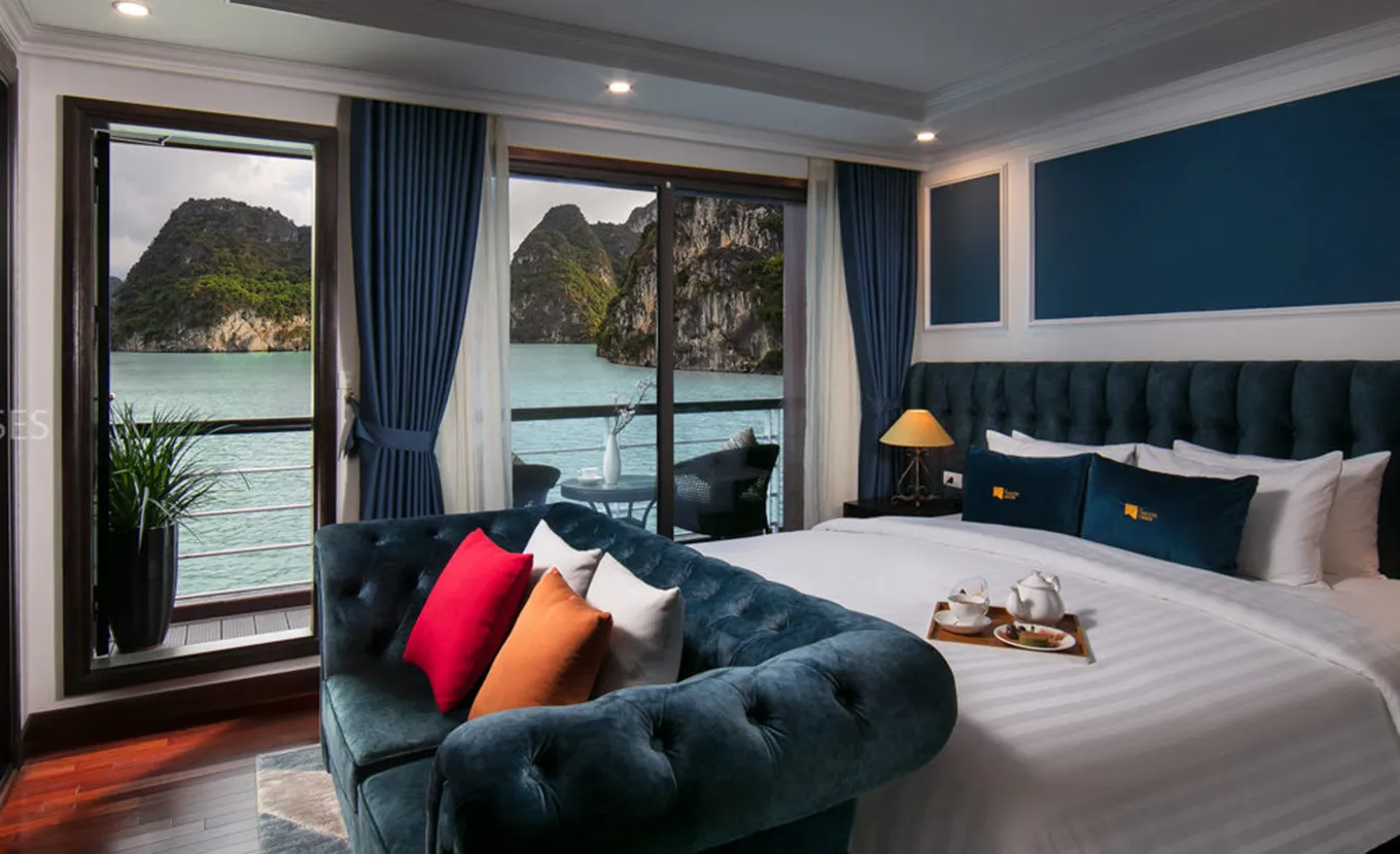 2 Days on Le Theatre Cruise offers a sublime slice of modern minimalism on the Halong Bay, with an emphasis on elegant simplicity and first-rate food, an airy refuge, our 21 luxurious cabins.