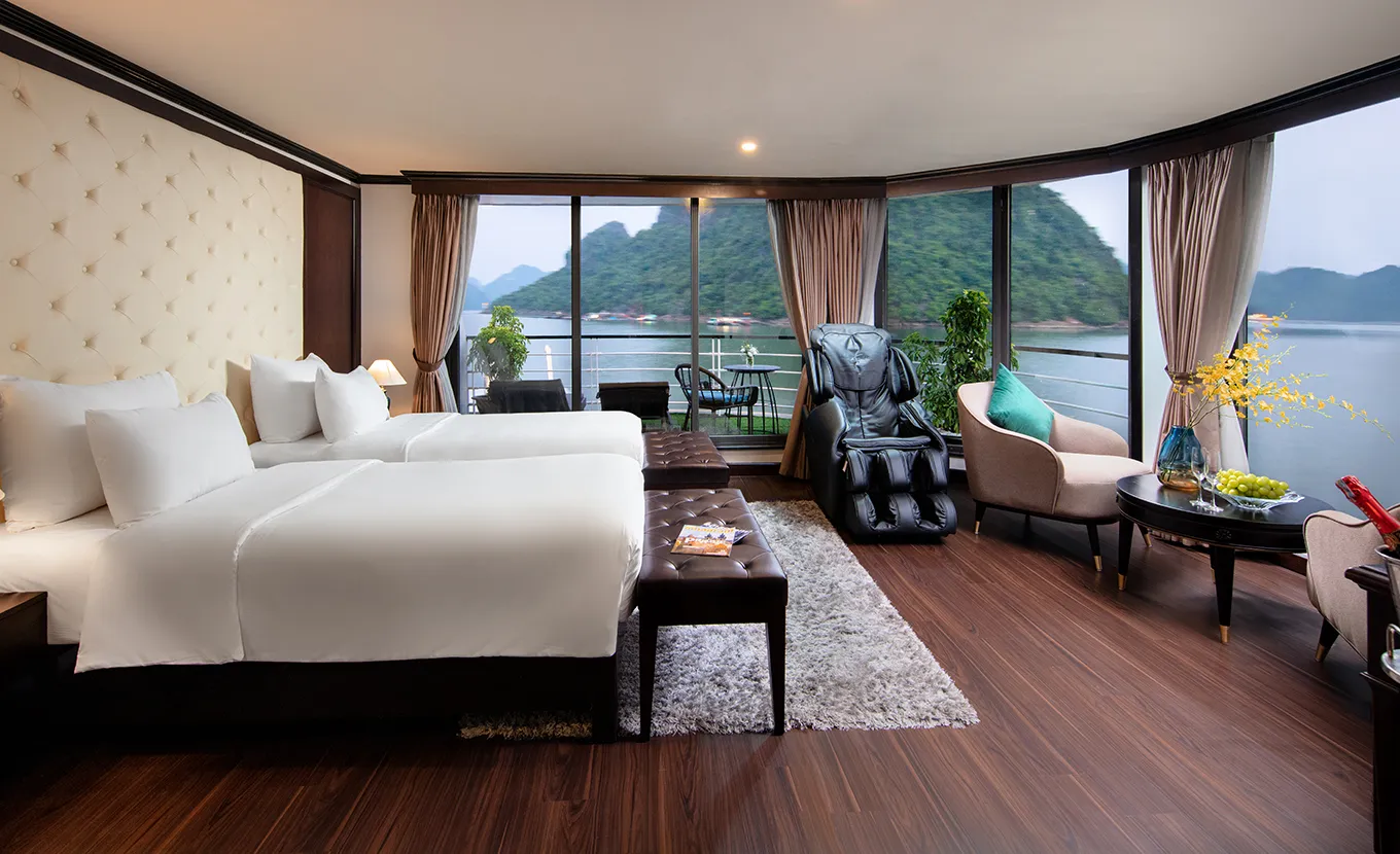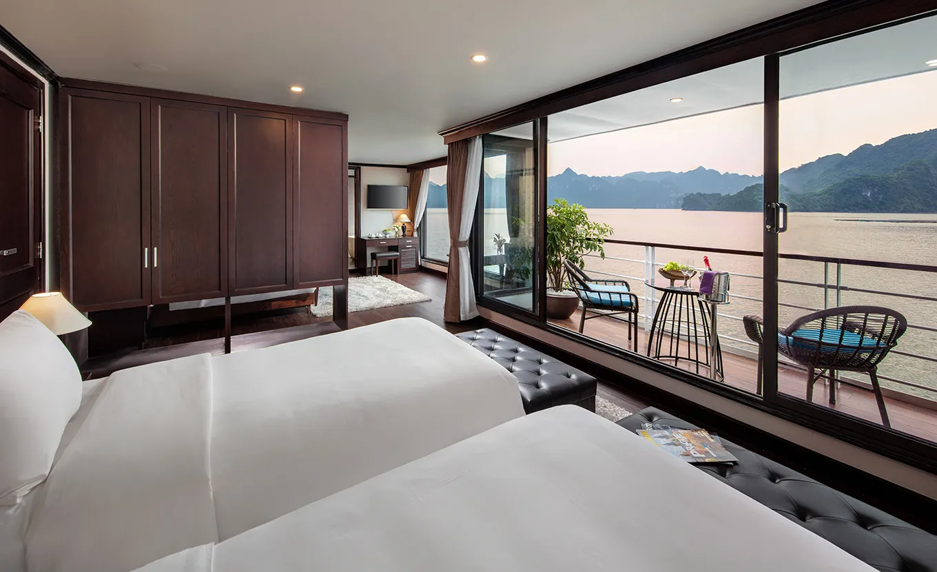 Mon Chéri cruise is one of the most luxurious 5- star yachts of Ha Long Bay – Lan Ha Bay. It is a perfect blend of the sophistication between the classic European form and the rustic essence of Vietnamese styling. Mon Chéri itself creates the difference with the tiny distinguished feature from its elegant design, deluxe restaurant (and proud to be the first and only cruise in Vietnam that serves Halal food with the certificate for the ingredients’ source and chef); the menu is up with careful consideration, 18 spacious cabins with private balcony bound to the spectacular view of Lan Ha Bay and emerald ocean.