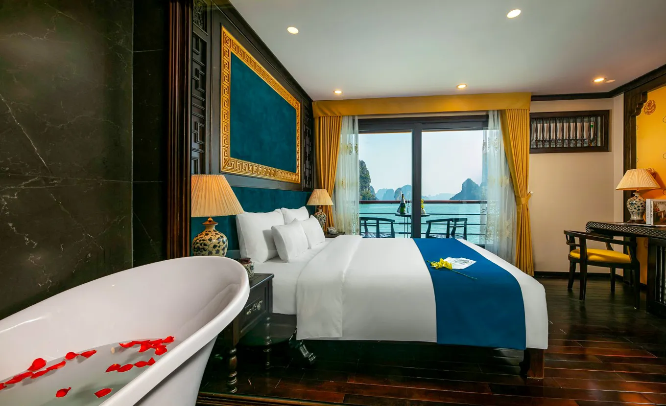 The Nostalgia Cruise is thoughtfully crafted to bring the history of the Nguyen Dynasty and its royal architecture to life. Launched in early February 2023, Nostalgia features 10 luxurious cabins and introduces a fresh route covering Halong Bay and Lan Ha Bay. Opting for the 3 Days 2 Nights cruise ensures a thorough exploration of the site, a peek into the traditional lives of fishermen, and ample time to relax amidst Vietnam's stunning scenery.
