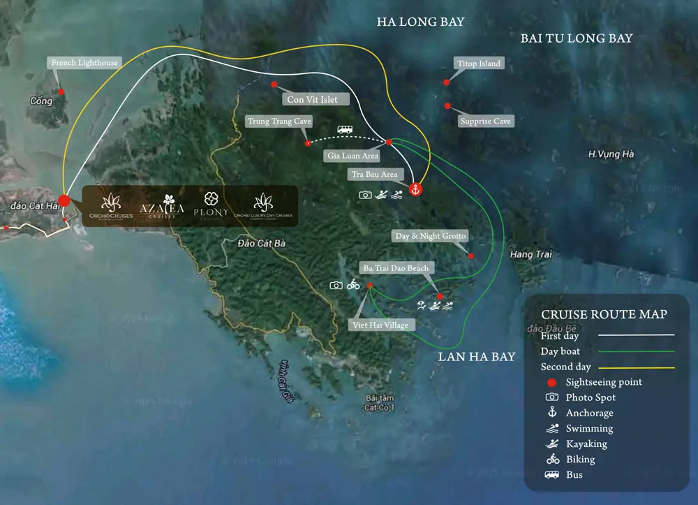 Orchid Trendy Cruise (Azalea cruise) provides 5-star services for the journey to discover the mysterious Lan Ha Bay that is full of charm. Witness the natural landscape and authentic life of the local, discovering exquisite cuisine ... surely an unforgettable impression on the journey to Vietnam. The unique three-day itinerary offers you unlimited exploration one of the outstanding landscapes on the earth.