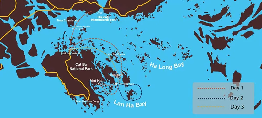 15:00: Prepare for a memorable adventure to Sang Cave, where you can choose to either kayak or take a rowing boat. The path leading to the cave is a 70-meter stretch of glistening water, with sunlight playing on the sparkling karst formations. Afterward, you're invited to explore the tranquil and emerald beauty of Ech Lagoon, a perfect spot for kayaking and swimming. It's a unique opportunity to immerse yourself in one of the most remote corners of Lan Ha Bay.