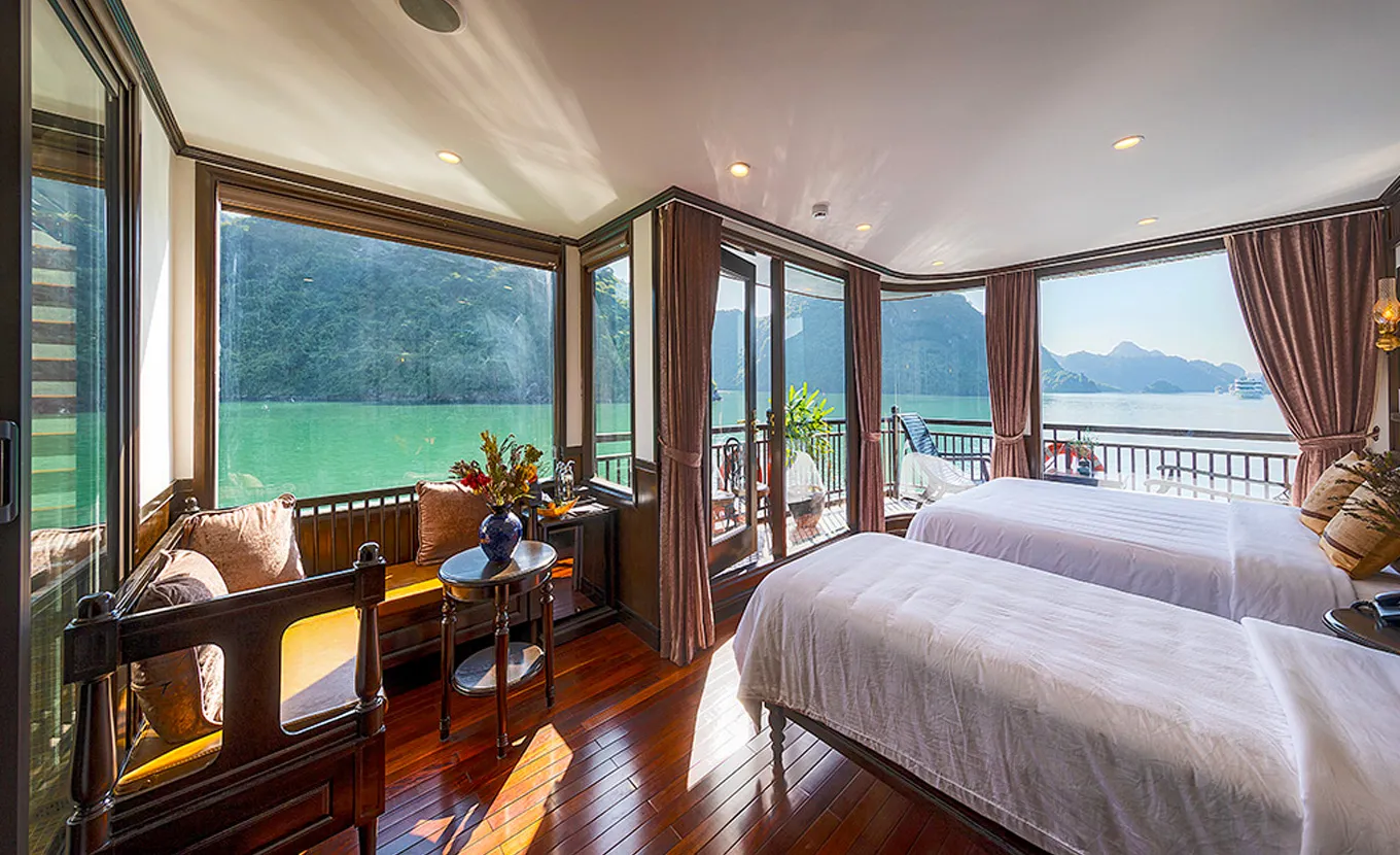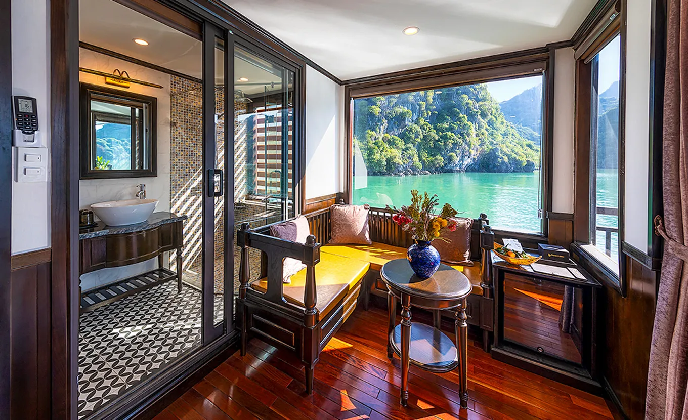10:00: Lunchtime. During the time, a well-prepared Set menu lunch is served. Sena Cruise slowly navigates emerald water and thousands of Karst Mountains towards the Harbor.