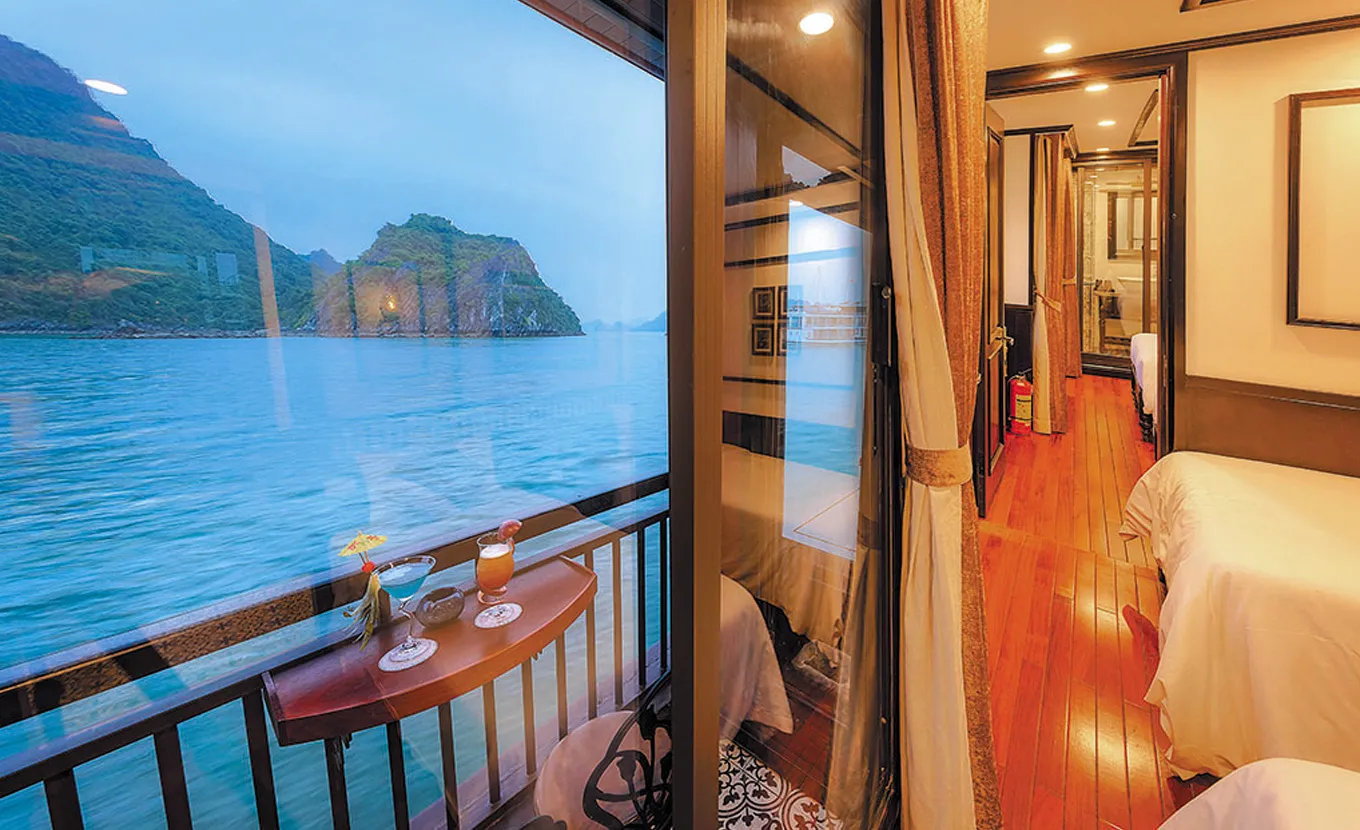 13:00 – 13:30: A fabulous lunch is served as Sena Cruise starts her sail into magnificent Lan Ha Bay – an extension of Halong Wonder, much quieter with fewer tourists. She will pass thousands of uniquely shaped limestone towers and islands.