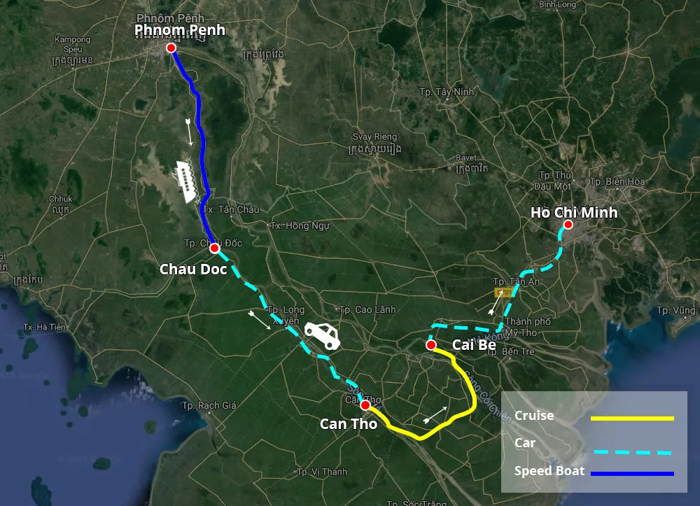 Enjoy the landscapes on water way by speed boat from Phnom Penh (Cambodia) to Chau Doc (Vietnam). Start your dreaming journey on traditional wooden boat to discover the well-known Mekong Delta. Witness the tranquil countryside and interact with local people.