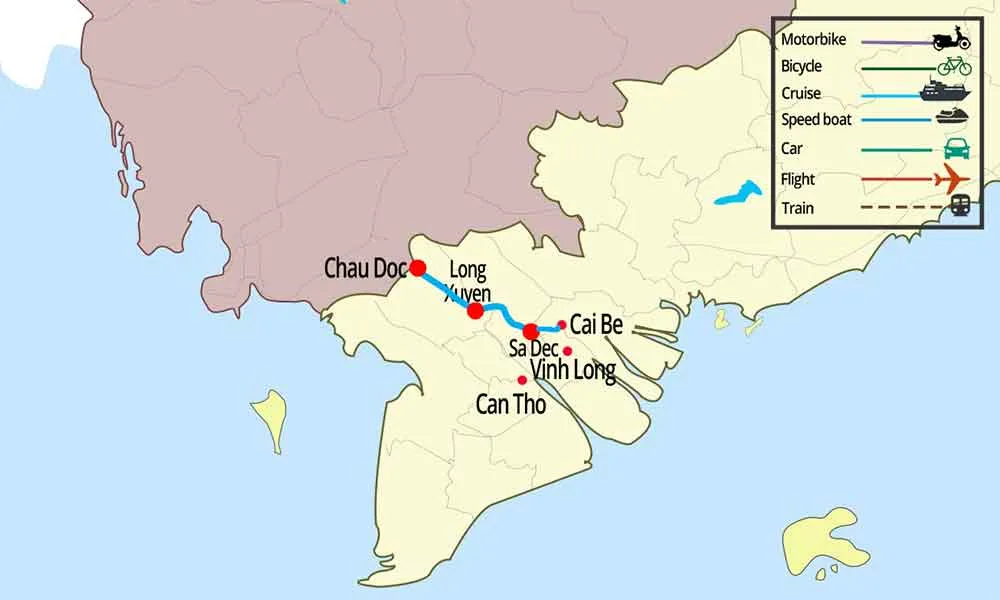 Enjoy 3 day cruise along the Mekong River from Cai Be to Chau Doc on Song Xanh authentic private sampan. Explore the local life and the beauties of Mekong River.