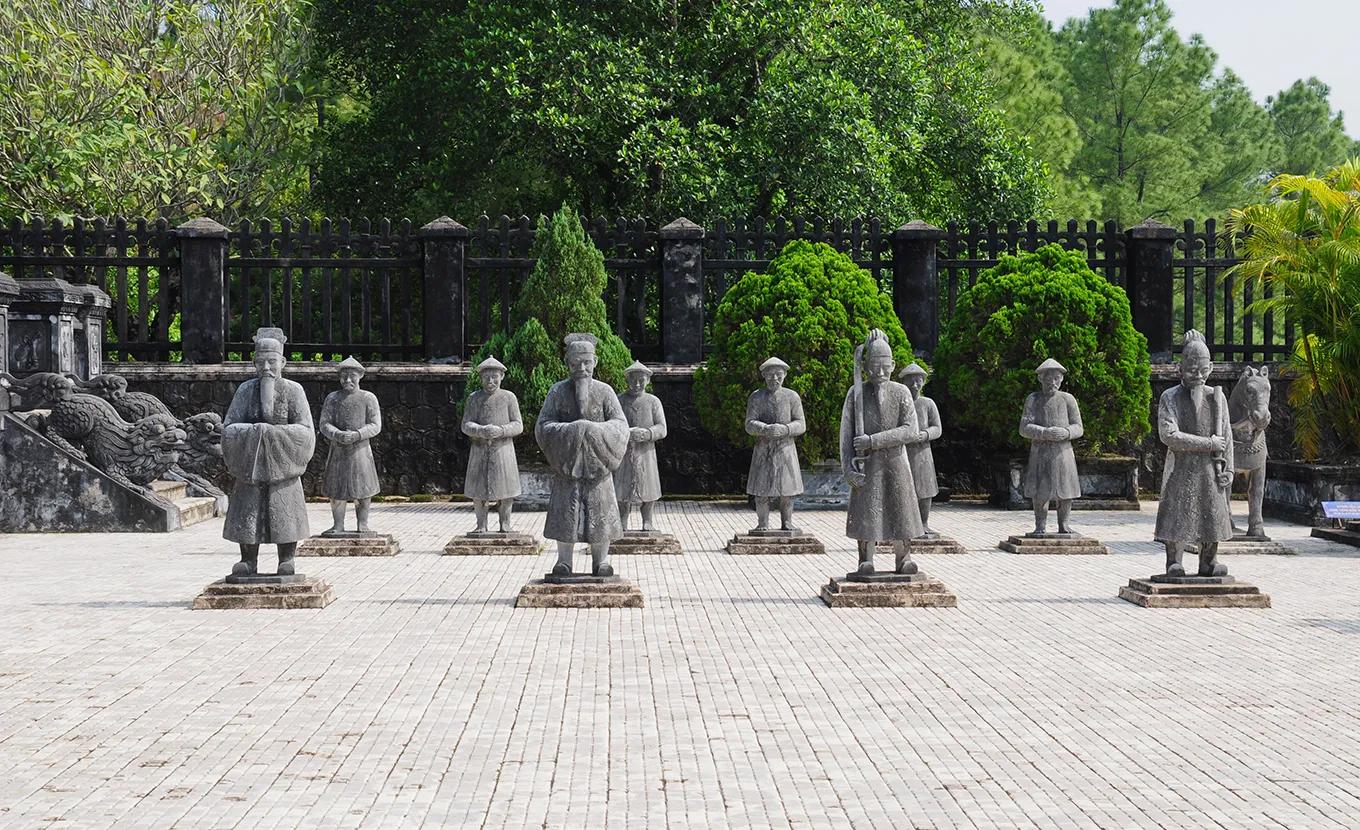 travel to Hue by passing Da Nang along the sea road. Once you arrive in Da Nang, stop to visit the Cham Museum which preserves the most important Cham culture collections in the world. Then, walk to My Khe beach where you can enjoy the view of giant Goodness of Mercy statues in the Linh Ung Pagoda. Take photos of fishermen by the beach then continue driving along the coastline to Hue ancient capital. Make a stop at top of the Hai Van pass to enjoy the breathtaking view of the ocean.
