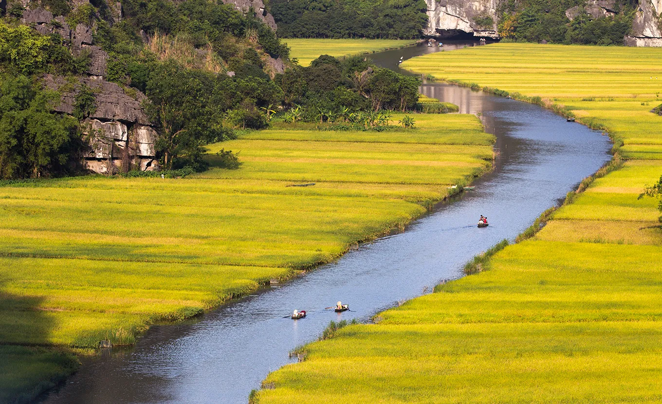 Well-known as Halong onland, Ninh Binh is an awesome site with giant limestone karst formations jutting out of the rice paddies and enriched with historical, cultural and geographic wonders. The tour experiences you with the most popular landscapes.