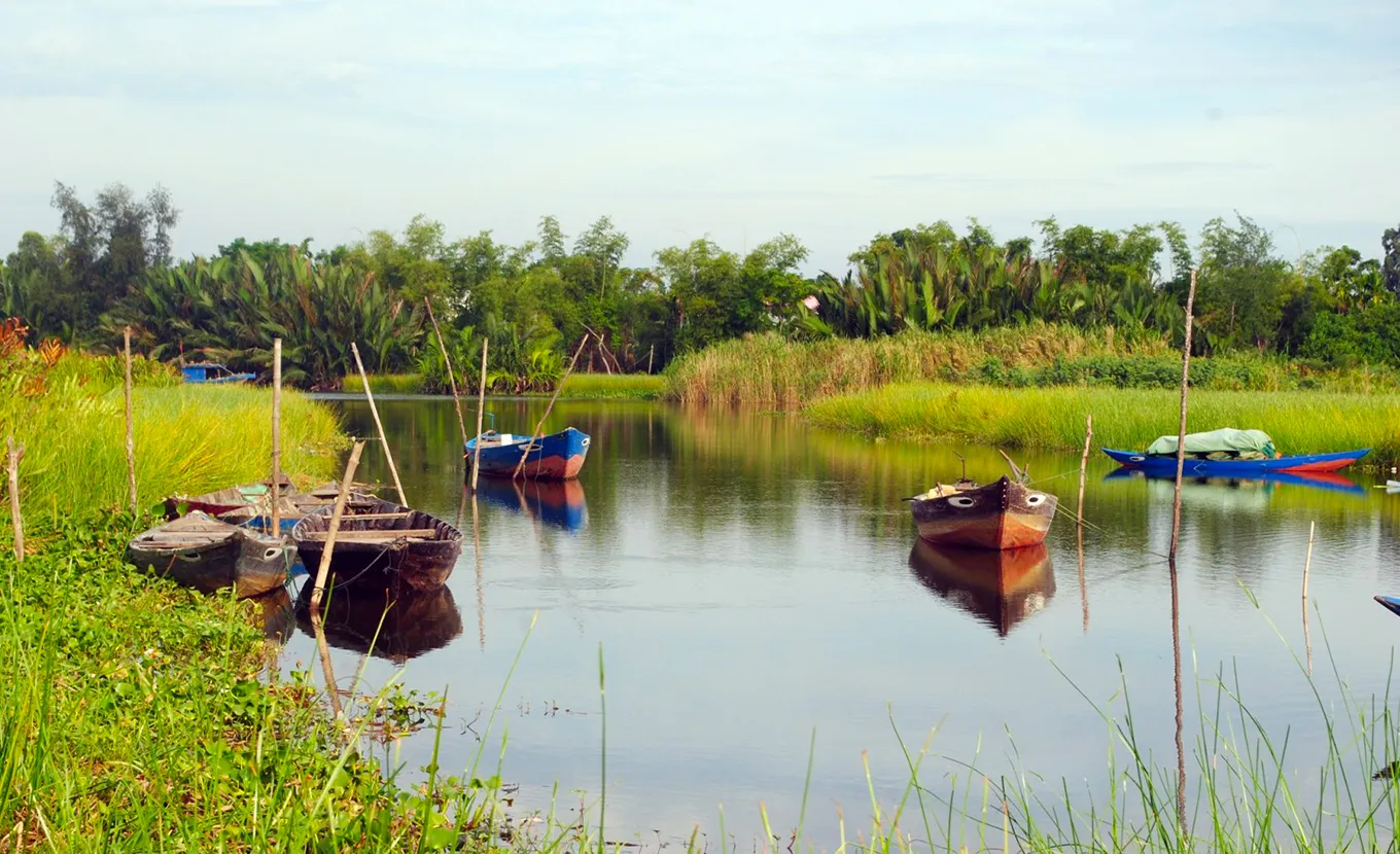 Travel to Tra Nhieu village. Immerse into the countryside in the center of Vietnam. The trip will allow some unprecedented meetings for instance, Ms Duoc with the mat weaving, Mr Kha with the bamboo sampan basket making and Mr Huynh Ri with his craftsman shipyard. A countryside landscape of palm and rice fields, buffaloes and farmers in the fields will surround you along the way.